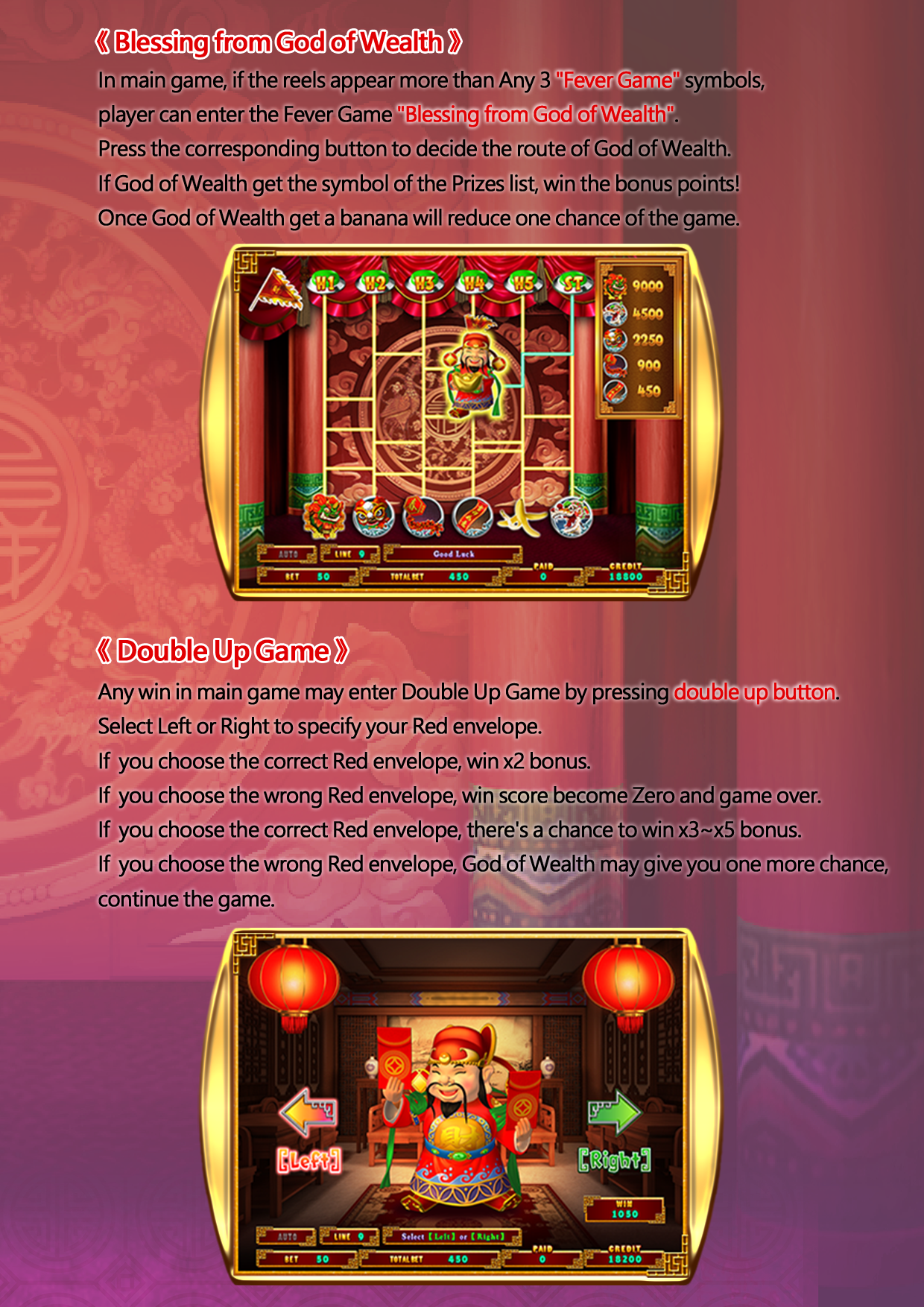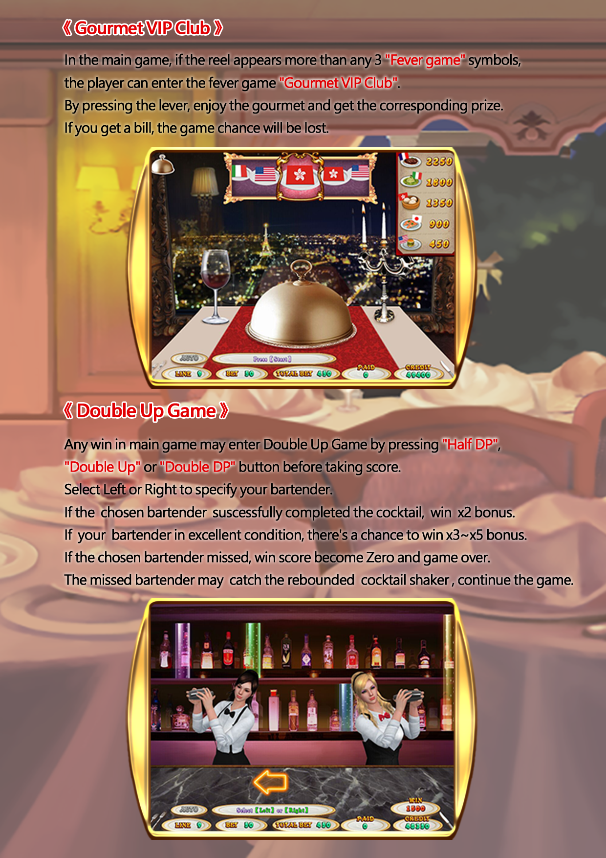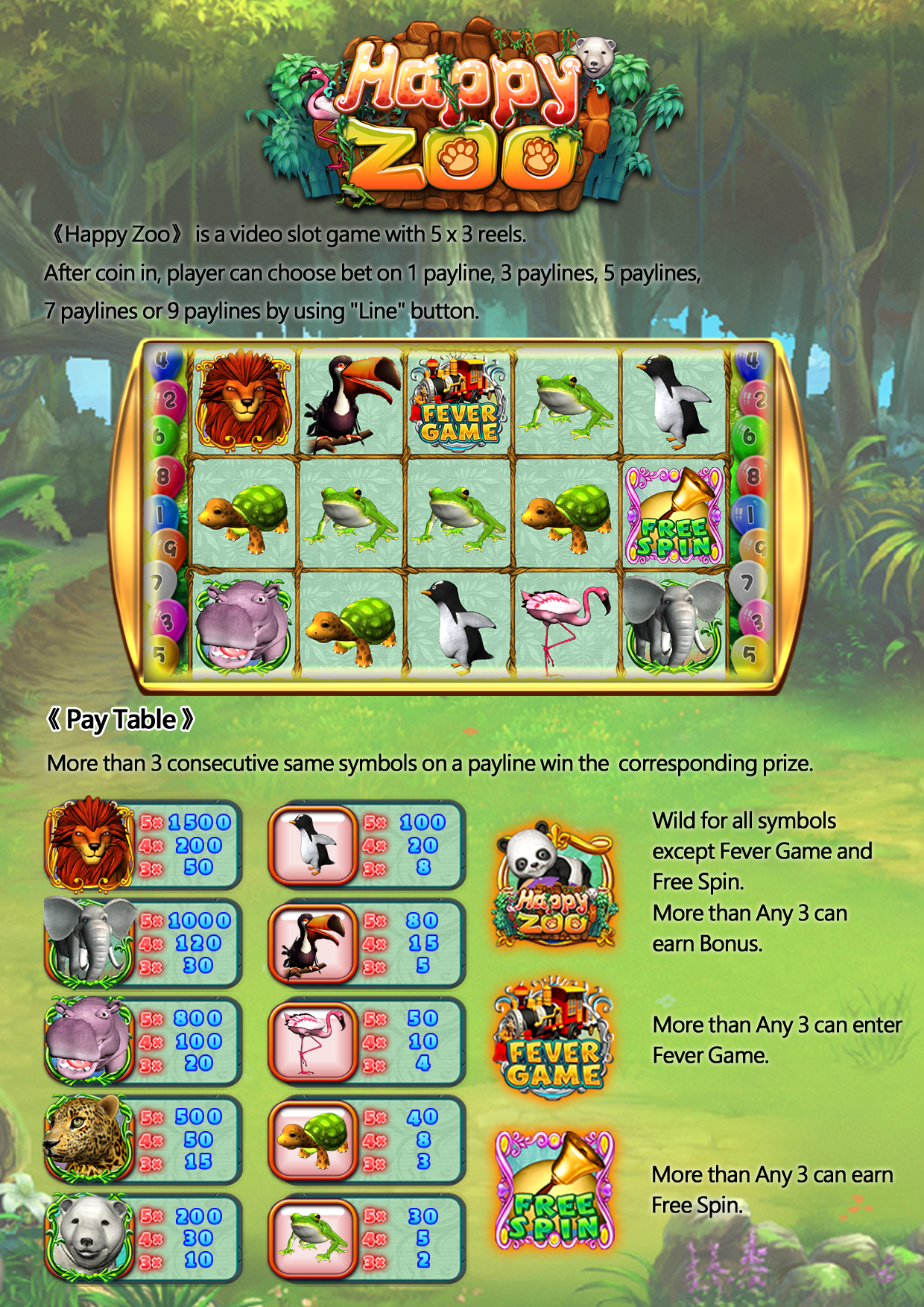“Super Spinner” is a video slot game with 5 x 3 reels. After coin in , player can choose bet on 1, 3, 5, 7 or 9 paylines by using “Line” button.